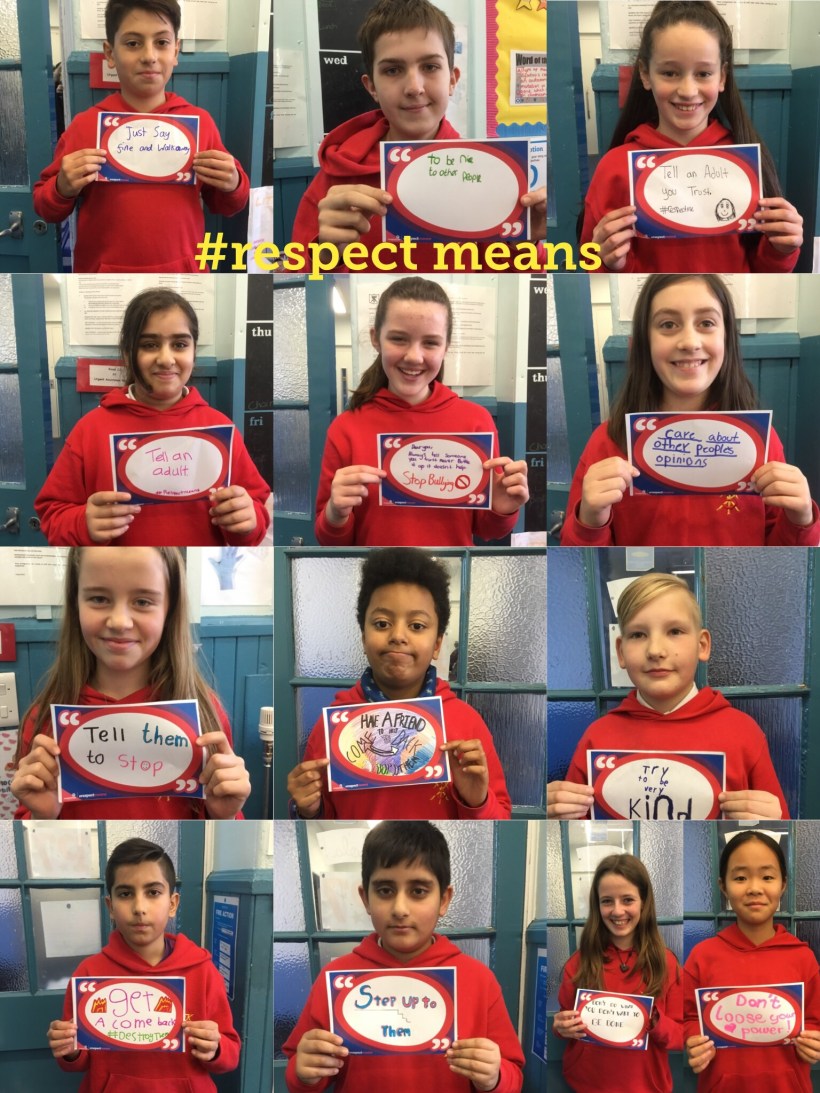 #respectmeans 16/11/2017 by lynnbrand Leave a comment P7 have been thinking about the advice they would give to help anyone being bullied. Share this: Click to share on X (Opens in new window) X Click to share on Facebook (Opens in new window) Facebook Like Loading...