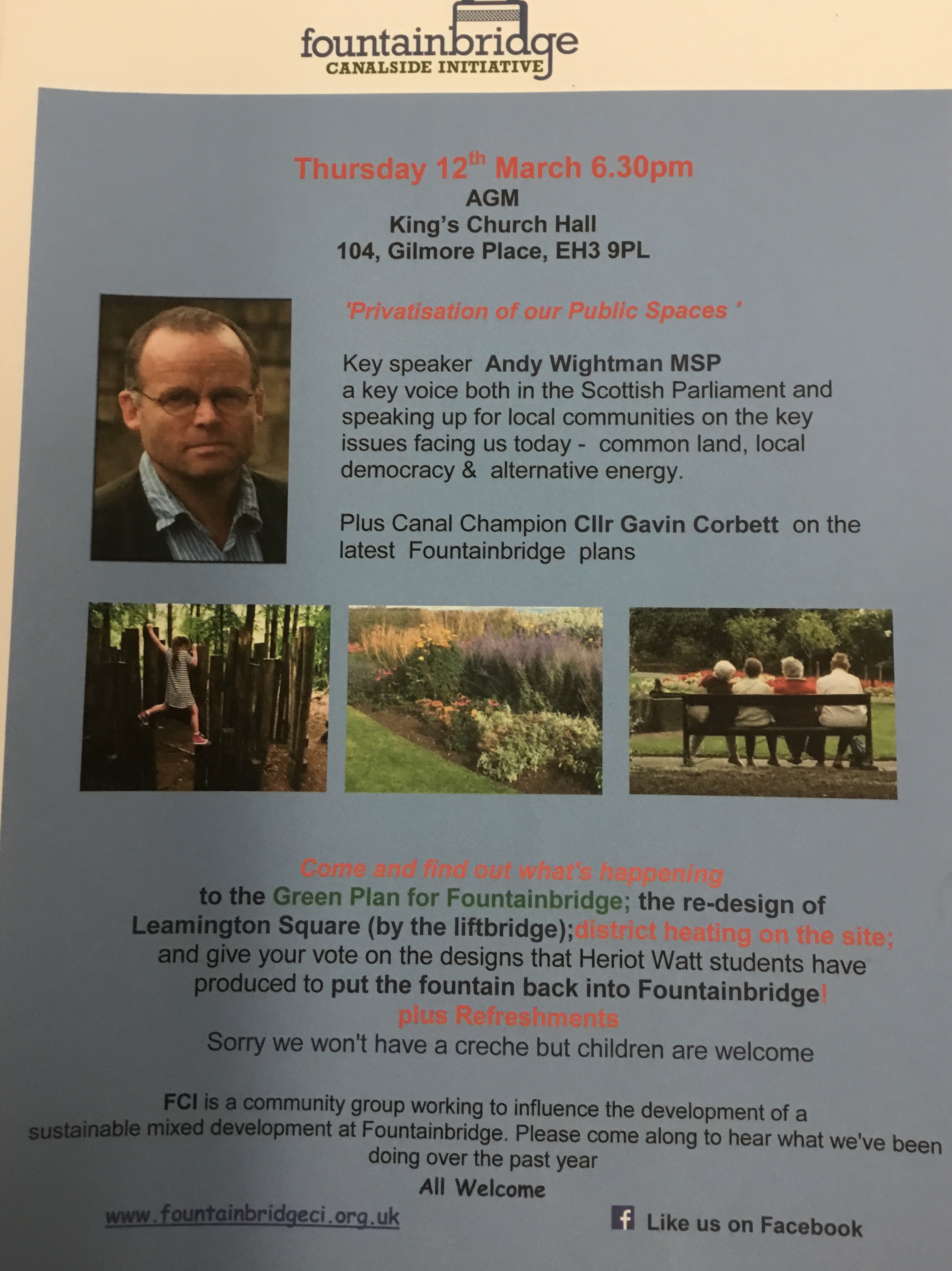 Our Tollcross families are welcome to attend the Fountainbridge Canalside Initiative AGM. We welcome the opportunity to work in partnership with our local community.